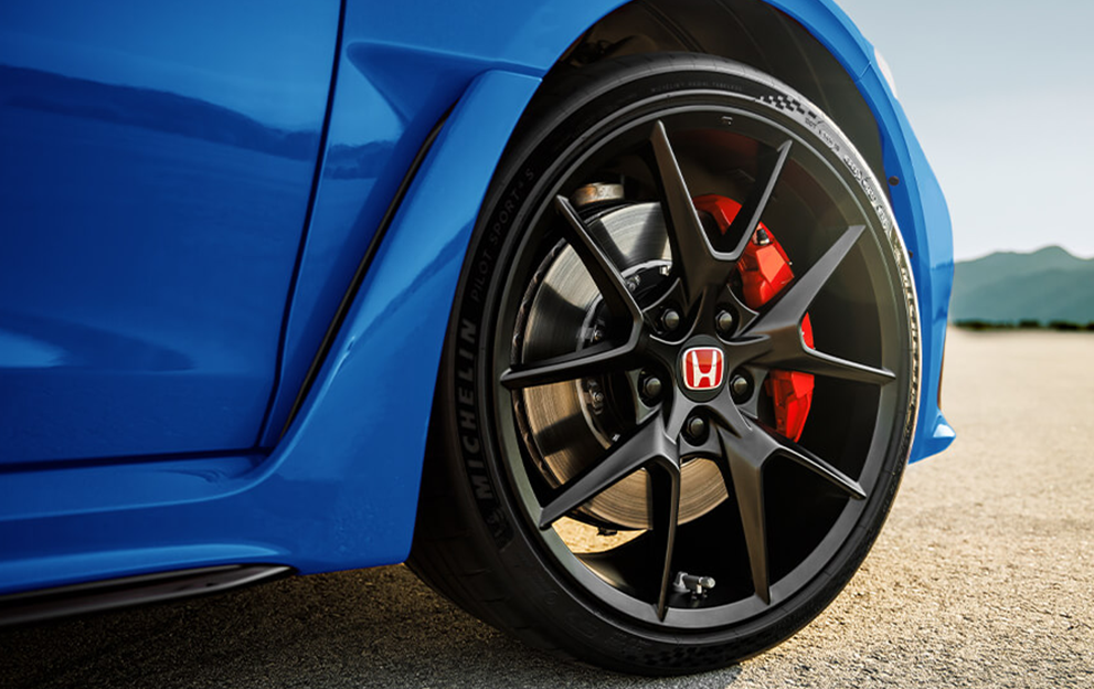 O Civic Type R conta com freios a disco nas 4 rodas com tecnologia ABS (Antilock Brake System) e EBD (Electronic Brake Distribution) para melhor controle e eficiência de frenagem em situações emergenciais.